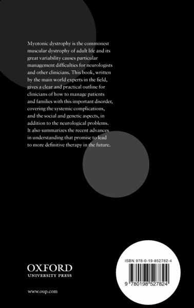 This book provides a full and practical account of management of myotonic dystrophy, the commonest muscular dystrophy of adult life and a condition of exceptional variability. Written for neurologists, clinical geneticists and other clinical specialities involved with the disorder, it deals with both the neurological aspects and also the wide range of systemic complications that may occur. In addition it provides details of information and support available to patients and families and gives a summary of the present state of clinical trials of therapeutic agents. These sections are preceded by general introductory chapters describing both the clinical features and also the current state of research into understanding the underlying mechanisms.