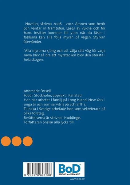 Noveller, fabler, berättelser och krönikor skrivna 2008 - 2012 . Ämnen som berör och väntar in framtiden. Kan läsas av både barn och vuxna. Insikter som kommer till ytan när du läser. "Alla myrorna sjöng och att välja rätt väg för varje myra blev så bra att myrstacken blev den största i hela skogen." Annmarie