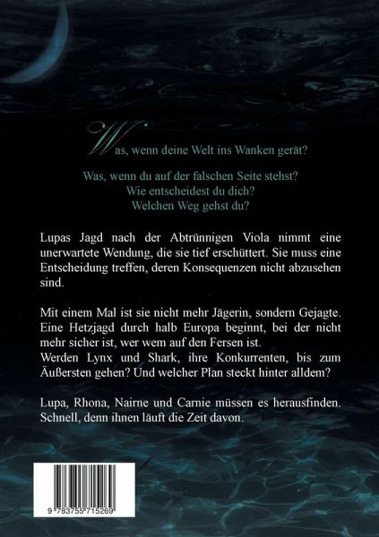 Was, wenn deine Welt ins Wanken gerät? Was, wenn du auf der falschen Seite stehst? Wie entscheidest du dich? Welchen Weg gehst du? Lupas Jagd nach der Abtrünnigen Viola nimmt eine unerwartete Wendung, die sie tief erschüttert. Sie muss eine Entscheidung treffen, deren Konsequenzen nicht abzusehen sind.Mit einem Mal ist sie nicht mehr Jägerin, sondern Gejagte. Eine Hetzjagd durch halb Europa beginnt, bei der nicht mehr sicher ist, wer wem auf den Fersen ist. Werden Lynx und Shark, ihre Konkurrenten, bis zum Äußersten gehen? Und welcher Plan steckt hinter alldem?+++++++++++++++++++++Triggerwarnung:In diesem Roman werden folgende sensible Themen behandelt:- (sexuelle) Gewalt- Schwierige Freundschaften sowie deren Ende- Diskriminierung- Leistungsdruck- Verlust von nahestehenden PersonenLupa, Rhona, Nairne und Carnie müssen es herausfinden. Schnell, denn ihnen läuft die Zeit davon.