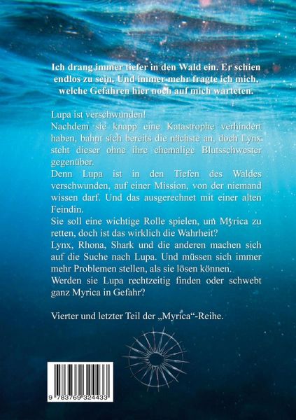 "Ich drang immer tiefer in den Wald ein. Er schien end-los zu sein. Und immer mehr fragte ich mich, welche Gefahren hier noch auf mich warteten." Lupa ist verschwunden! Nachdem sie knapp eine Katastrophe verhindert haben, bahnt sich bereits die nächste an, doch Lynx steht dieser ohne ihre ehemalige Blutsschwester gegenüber. Denn Lupa ist in den Tiefen des Waldes verschwunden, auf einer Mission, von der niemand wissen darf. Und das ausgerechnet mit einer alten Feindin. Sie soll eine wichtige Rolle spielen, um Myrica zu retten, doch ist das wirklich die Wahrheit? Lynx, Rhona, Shark und die anderen machen sich auf die Suche nach Lupa. Und müssen sich immer mehr Proble-men stellen, als sie lösen können. Werden sie Lupa rechtzeitig finden oder schwebt ganz Myrica in Gefahr? Vierter und letzter Teil der "Myrica"-Reihe.