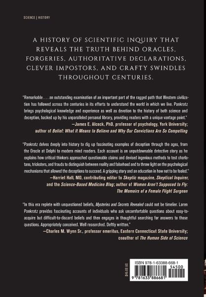 Mysteries and Secrets Revealed uncovers the reality behind mysteries of nature and secrets of frauds that eluded common understanding. The journey begins in the ancient Greek city of Delphi, where priests claimed the gift of a priceless gold lion was an acknowledgement of their clairvoyant powers. But their concocted story concealed an embarrassing blunder. Those sufficiently savvy to catch the lie became aware of even deeper problems. Author Loren Pankratz then guides us through the conflicts of Renaissance scholars, including Galileo who explained things in ways that enraged philosophers and infuriated priests. Galileo's methods of investigation were perpetuated by the meticulous work of the Academy of Experiment, and Bernard Fontenelle's enthralling dialogue enabled common people to accept life in the rearranged sun-centered universe. Clairvoyants in a mesmeric trance claimed they could visit distant planets and endure brutal surgical procedures. If any of this was real, how was it possible? One nineteenth century mesmeric savant, Alexis Didier, was so convincing that someone claimed no case of clairvoyance could be made for anyone if his accomplishments were not real. This unchallenged declaration is now unraveled here for the first time through information gleaned from uncommon documents and rare antiquarian pamphlets. The surprising manifestations of modern spiritualism quickly escalated into a psychic arms race that included mysterious tipping and turning of tables. Scientist Michael Faraday devised ingenious experiments to show how subtle muscle reactions outside of awareness created these manifestations. On the other hand, explanations for table levitations and mysterious writing on slates could only be solved by individuals with acute observational skills and acquainted with the methods of trickery. Each story in Mysteries and SecretsRevealed captures the tension of conflict, the thrill of discovery, and the strategies of science that unmasked frauds, fakes, false belief, and the enigmas of our natural world.