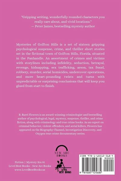 Mysteries of Golfton Hills is a set of sixteen gripping psychological suspense, crime, and thriller short stories set in the fictional town of Golfton Hills, Florida, situated in the Panhandle. An assortment of crimes and victims with storylines including infidelity, seduction, betrayal, revenge, kidnapping, sex trafficking, arson, tax fraud, robbery, murder, serial homicides, undercover operations, and more heart-pounding twists and turns with unpredictable or surprising conclusions that will keep you glued from start to finish.