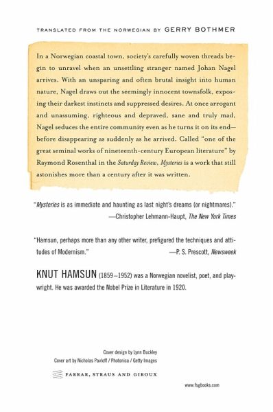 In a Norwegian coastal town, society's carefully woven threads begin to unravel when an unsettling stranger named Johan Nagel arrives. With an often brutal insight into human nature, Nagel draws out the townsfolk, exposing their darkest instincts and suppressed desires. At once arrogant and unassuming, righteous and depraved, Nagel seduces the entire community even as he turns it on its head-before disappearing as suddenly as he arrived.