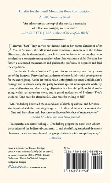 A BBC Summer Read "Must-read . . . [Mysterium] ascends, literally and figuratively, vividly capturing the outer edge of physical, mental, emotional and spiritual travail." --The Washington Post Inspired by the true story of Nanda Devi Unsoeld's tragic 1976 death while climbing her namesake mountain, Susan Froderberg's novel Mysterium tells the tale of a courageous woman's ascent to the summit of India's highest peak to honor her fallen mother. Mysterium, known as Mount Sarasvati, looms over the Indian Himalayas as the range's tallest peak in the dazzling fictional world Susan Froderberg has created. Sarasvati "Sara" Troy is determined to reach the peak for which she was christened, and to climb it in honor of her mother, who perished in a mountaineering accident when Sara was just a child. She asks her father, a celebrated mountaineer and philosophy professor, to organize and lead the expedition.The six climbers he recruits are an uneasy mix. They include his longtime friend Dr. Arun Reddy, a recent widower, and Reddy's son, who often challenges his father; Wilder Carson, the acclaimed climber who is tormented by the death of his brother; Wilder's wife, Vida, a former lover of Dr. Reddy; and the distinguished scholar of climbing Virgil Adams and his wife, Hillary. Porters and Sherpas are recruited in India to assist and be part of the team. The party's journey is harrowing, taking them from the mountain's gorge, into its sanctuary, and finally onto the summit, a path that evokes the hell, purgatory, and heaven of Dante's Inferno. As the air thins and this unforgettable journey unfolds, Sara emerges as a Beatrice-like figure, buoying her companions up the mountain through the sheer strength and beauty of her being. Both monumental quest and dreamlike odyssey, Mysterium is infused with the language of climbing and profound existential insight.
