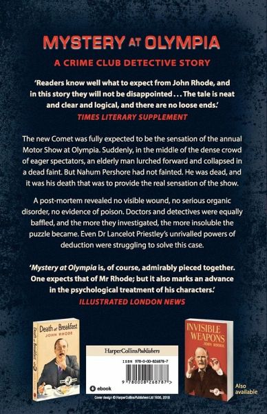 'Mystery at Olympia by John Rhode is, of course, admirably pieced together. One expects that or Mr Rhode; but it also marks an advance in the psychological treatment of his characters.'