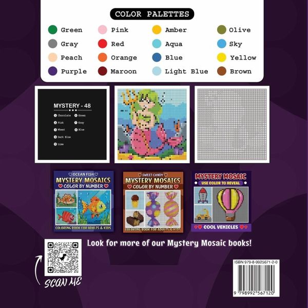 50 Unicorn and Mermaid Pixel Art Coloring Pages for All Ages Spark Kids' Creativity with the Mystery Mosaic: Unicorns & Mermaids - 50 pixel art coloring pages Get ready to embark on a magical coloring journey with Mystery Mosaic: Unicorns and Mermaids! Perfect for kids, teens, and adults alike, this book combines the excitement of mosaic art with the joy of coloring everyone's favorite childhood magical creatures-unicorns and mermaids. What makes this mystery mosaic coloring book a must-have? - A Mosaic of Unicorns and Mermaids: Each page is a grid of numbered squares, transforming into shimmering unicorns and mermaids as you color by number. Watch your favorite unicorns and mermaids come to life piece by piece! - Stress-Free Fun: Enjoy the relaxing, therapeutic experience of coloring while indulging in the satisfying reveal of vibrant mosaics. A perfect way to unwind and recharge. - For All Ages: Whether you're a child exploring creativity or an adult seeking relaxation, the straightforward color key and engaging designs make it easy for everyone to enjoy. Improves number recognition in children. - Incredible Variety: Featuring a wide range of unicorns and mermaids and bold designs, this book offers hours of creative fun and discovery for mosaic and coloring enthusiasts. Let your imagination soar and your creativity shine with Mystery Mosaic: Unicorns and Mermaids!