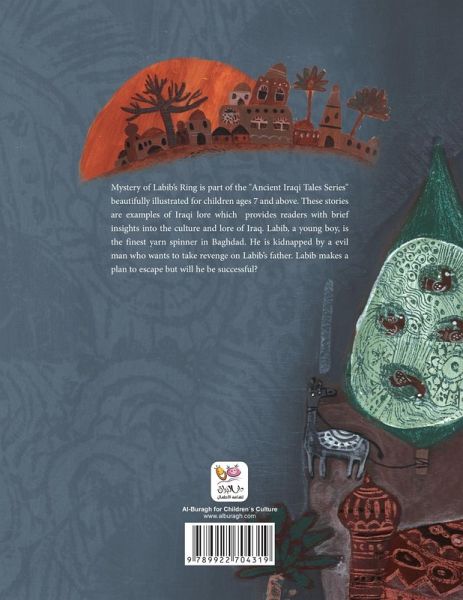 Mystery of Labib's Ring is part of the "Ancient Iraqi Tales" series beautifully illustrated for children ages 7 and above. These stories are examples of Iraqi lore which provides readers with insights into the culture and lore of Iraq. Labib, a young boy, is the finest yarn spinner in Baghdad. He is kidnapped by an evil man who wants to take revenge on Labib's father. Labib makes a plan to escape but will he succed?
