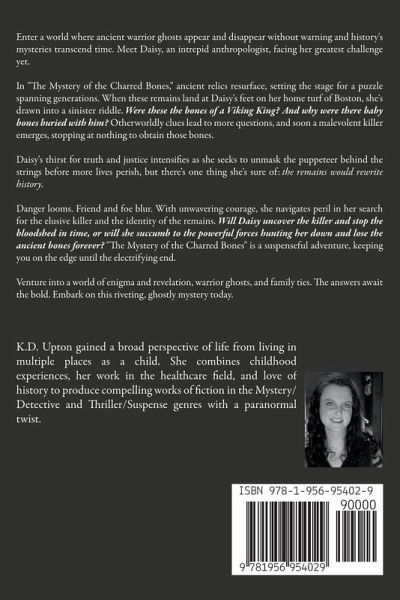 Enter a world where ancient warrior ghosts appear and disappear without warning and history's mysteries transcend time. Meet Daisy, an intrepid anthropologist, facing her greatest challenge yet. In "The Mystery of the Charred Bones," ancient relics resurface, setting the stage for a puzzle spanning generations. When these remains land at Daisy's feet on her home turf of Boston, she's drawn into a sinister riddle. Were these the bones of a Viking King? And why were there baby bones buried with him? Otherworldly clues lead to more questions, and soon a malevolent killer emerges, stopping at nothing to obtain those bones. Daisy's thirst for truth and justice intensifies as she seeks to unmask the puppeteer behind the strings before more lives perish, but there's one thing she's sure of: the remains would rewrite history. Danger looms. Friend and foe blur. With unwavering courage, she navigates peril in her search for the elusive killer and the identity of the remains. Will Daisy uncover the killer and stop the bloodshed in time, or will she succumb to the powerful forces hunting her down and lose the ancient bones forever? "The Mystery of the Charred Bones" is a suspenseful adventure, keeping you on the edge until the electrifying end. Venture into a world of enigma and revelation, warrior ghosts, and family ties. The answers await the bold. Embark on this riveting, ghostly mystery today.