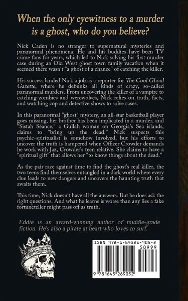 Selah Award Winner - Purple Dragonfly Book Award Honorable Mention "A whip-smart mystery series with a touch of paranormal and much-needed humor, realistic crime-scene drama plays out in each book, including this latest, when a girl goes missing and her brother is wrongfully imprisoned. Only this time, Nick's brilliant wit and sleuthing skills are seriously tested when he is brought into a world of spiritualists, mediums, and ghosts coming back from the dead. In the spirit of Scooby-Doo, "Is it a ghost or not?" and "Those meddling kids...," I highly recommend this series, especially for boys and reluctant readers." -Kim Childress, Book Editor, Girls' Life Magazine Nick Caden is no stranger to supernatural mysteries and paranormal phenomena. He and his buddies have been TV crime fans for years, which led to Nick solving his first murder case during an Old West ghost town family vacation when it seemed there wasn't "a ghost of a chance" of catching the killer. His success landed Nick a job as a reporter for The Cool Ghoul Gazette, where he debunks all kinds of crazy, so-called paranormal murders. From uncovering the killer of a vampire to catching zombies and werewolves, Nick relies on truth, facts, and watching cop and detective shows to solve cases. In this paranormal "ghost" mystery, an all-star basketball player goes missing, her brother has been implicated in a murder, and "Sistah Séance," a Gullah woman on Georgia's Sea islands, claims to "bring up the dead. Nick suspects this psychic-spiritualist is somehow involved, but his efforts to uncover the truth is hampered when local police insist he keep his distance from the case. Preferring to work alone, Nick becomes annoyed when Officer Crowder demands he work with Jaz, Crowder's teen relative, who has a "spiritual gift" that allows her "to know things about the dead." As the pair work to find Nick's friend, Keisha, the victim of a hit and run near the entrance to a graveyard, Nick discovers a world of darkness, where "evil thoughts and spirits flourish." This time, Nick doesn't have all the answers. But he does ask the right questions. And what he learns is worse than any lies a fake fortuneteller might pass off as truth. This charming middle-grade mystery blends classic whodunits with Scooby-Doo, Hardy Boys, and Nancy Drew-style mystery adventures.