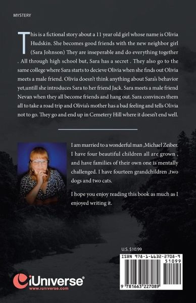 This is a fictional story about a 11 year old girl whose name is Olivia Hudskin. She becomes good friends with the new neighbor girl (Sara Johnson) They are inseperable and do everything together . All through high school but, Sara has a secret . They also go to the same college where Sara starts to decieve Olivia when she finds out Olivia meets a male friend. Olivia doesn't think anything about Sara's behavior yet,untill she introduces Sara to her friend Jack. Sara meets a male friend Nevan when they all become friends and hang out. Sara convinces them all to take a road trip and Olivia's mother has a bad feeling and tells Olivia not to go. They go and end up in Cemetery Hill where it doesn't end well.