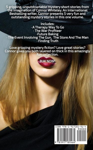 5 gripping, unputdownable mystery short stories from the imagination of Connor Whiteley. An International Bestselling writer, Connor presents 5 very fun and outstanding mystery stories in this one volume. Includes: · A Therapy Way To Go · The War Profiteer · Future Baking · The Event Involving The Gun, The Store And The Man · Finding Truth Love gripping mystery fiction? Love great stories? Connor gives you both layered on thick in this amazingly fun collection. BUY NOW!
