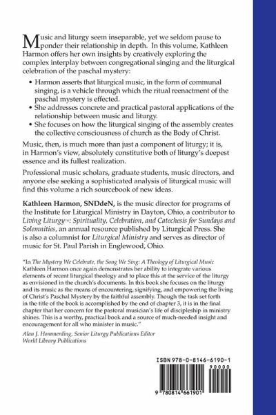 Music and liturgy seem inseparable, yet we seldom pause to ponder their relationship in depth. In this volume, Kathleen Harmon offers her own insights by creatively exploring the complex interplay between congregational singing and the liturgical celebration of the paschal mystery: ¿ Harmon asserts that liturgical music, in the form of communal singing, is a vehicle through which the ritual reenactment of the paschal mystery is effected. ¿ She addresses concrete and practical pastoral applications of the relationship between music and liturgy. ¿ She focuses on how the liturgical singing of the assembly creates the collective consciousness of church as the Body of Christ. Music, then, is much more than just a component of liturgy; it is, in Harmon's view, absolutely constitutive both of liturgy's deepest essence and its fullest realization. Professional music scholars, graduate students, music directors, and anyone else seeking a sophisticated analysis of liturgical music will Find this volume a rich sourcebook of new ideas.