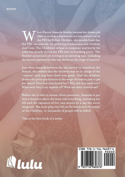 When Doctor Amanda Stanley receives her dream job offer to work as a psychiatrist at a new school run by the FBI for Gifted Children, she quickly finds that the FBI, its controls, its unfeeling bureaucracy and children don't mix. The Children's refusal to cooperate and live by the rules has already driven the FBI near its breaking point. The Facility's personnel are leaving at an alarming rate, including the former psychiatrist who was driven to the verge of insanity. Just when Amanda believes she has started to transform the School, she realizes that the children may be in charge of the "asylum" and may have their own goals. Had the children driven the prior psychiatrist to the verge of insanity just to get her there? How had they found her? Why did they need her? What were they truly capable of? What are their intentions? Before she is able to answer those questions, Amanda is put into a situation where she must risk everything, including her life and the exposure of her own secrets in a way she never imagined. She must place her life in the hands and the minds of the Children, or thousands of people will be killed. This is the first book of a series