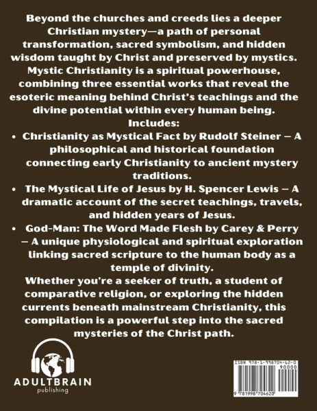 Beyond the churches and creeds lies a deeper Christian mystery-a path of personal transformation, sacred symbolism, and hidden wisdom taught by Christ and preserved by mystics. Mystic Christianity is a spiritual powerhouse, combining three essential works that reveal the esoteric meaning behind Christ's teachings and the divine potential within every human being. Includes:Christianity as Mystical Fact by Rudolf Steiner - A philosophical and historical foundation connecting early Christianity to ancient mystery traditions. The Mystical Life of Jesus by H. Spencer Lewis - A dramatic account of the secret teachings, travels, and hidden years of Jesus. God-Man: The Word Made Flesh by Carey & Perry - A unique physiological and spiritual exploration linking sacred scripture to the human body as a temple of divinity. Whether you're a seeker of truth, a student of comparative religion, or exploring the hidden currents beneath mainstream Christianity, this compilation is a powerful step into the sacred mysteries of the Christ path.