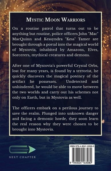 On a routine patrol that turns out to be anything but routine, police officers John "Mac" MacQuinn and Kessyndra "Kess" Tamer are brought through a portal into the magical world of Mystovia, inhabited by Amazons, Elves, Sorcerers, mythical creatures and demons. After one of Mystovia's powerful Crystal Orbs, lost for many years, is found by a terrorist, he quickly discovers the magical potency of the artifact he possesses. Undetected and unhindered, he would be able to move between the two worlds and carry out his schemes not only on Earth, but in Mystovia as well. The officers embark on a perilous journey to save the realm. Plunged into unknown danger and facing a demonic horde, they soon learn the real reason why they were chosen to be brought into Mystovia.