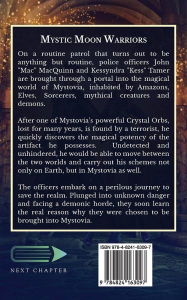On a routine patrol that turns out to be anything but routine, police officers John "Mac" MacQuinn and Kessyndra "Kess" Tamer are brought through a portal into the magical world of Mystovia, inhabited by Amazons, Elves, Sorcerers, mythical creatures and demons. After one of Mystovia's powerful Crystal Orbs, lost for many years, is found by a terrorist, he quickly discovers the magical potency of the artifact he possesses. Undetected and unhindered, he would be able to move between the two worlds and carry out his schemes not only on Earth, but in Mystovia as well. The officers embark on a perilous journey to save the realm. Plunged into unknown danger and facing a demonic horde, they soon learn the real reason why they were chosen to be brought into Mystovia.
