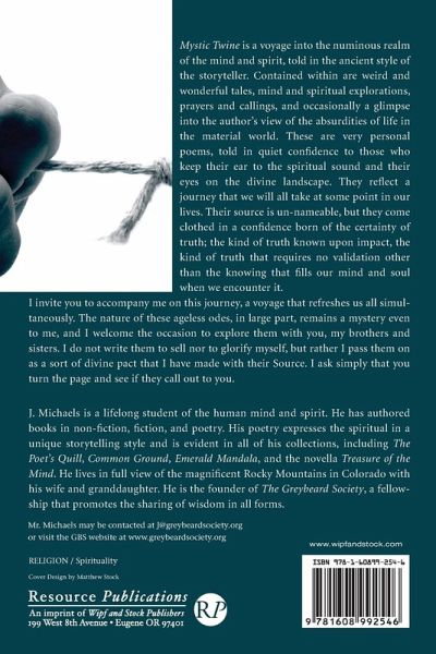 Mystic Twine is a voyage into the numinous realm of the mind and spirit, told in the ancient style of the storyteller. Contained within are weird and wonderful tales, mind and spiritual explorations, prayers and callings, and occasionally a glimpse into the author's view of the absurdities of life in the material world. These are very personal poems, told in quiet confidence to those who keep their ear to the spiritual sound and their eyes on the divine landscape. They reflect a journey that we will all take at some point in our lives. Their source is un-nameable, but they come clothed in a confidence born of the certainty of truth; the kind of truth known upon impact, the kind of truth that requires no validation other than the knowing that fills our mind and soul when we encounter it. I invite you to accompany me on this journey, a voyage that refreshes us all simultaneously. The nature of these ageless odes, in large part, remains a mystery even to me, and I welcome the occasion to explore them with you, my brothers and sisters. I do not write them to sell nor to glorify myself, but rather I pass them on as a sort of divine pact that I have made with their Source. I ask simply that you turn the page and see if they call out to you.
