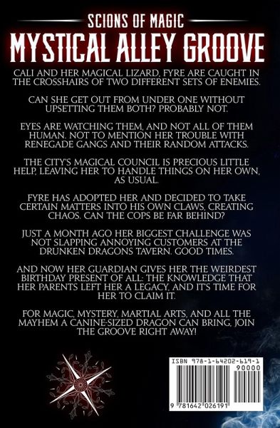 Cali and her magical lizard, Fyre are caught in the crosshairs of two different sets of enemies. Can she get out from under one without upsetting them both? Probably not. Eyes are watching them, and not all of them human. Not to mention her trouble with renegade gangs and their random attacks. The city's magical council is precious little help, leaving her to handle things on her own, as usual. Fyre has adopted her and decided to take certain matters into his own claws, creating chaos. Can the cops be far behind? Just a month ago her biggest challenge was not slapping annoying customers at the Drunken Dragons Tavern. Good times. And now her guardian gives her the weirdest birthday present of all: The knowledge that her parents left her a legacy, and it's time for her to claim it. For magic, mystery, martial arts, and all the mayhem a canine-sized dragon can bring, join the Groove right away! Scroll up and click the "Buy Now" button and read it today.