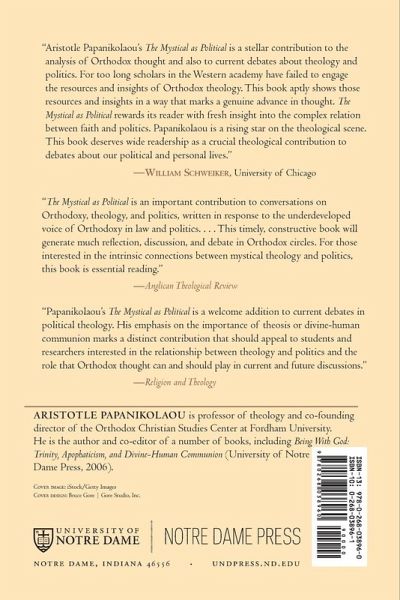 Theosis, or the principle of divine-human communion, sparks the theological imagination of Orthodox Christians and has been historically important to questions of political theology. In The Mystical as Political: Democracy and Non-Radical Orthodoxy, Aristotle Papanikolaou argues that a political theology grounded in the principle of divine-human communion must be one that unequivocally endorses a political community that is democratic in a way that structures itself around the modern liberal principles of freedom of religion, the protection of human rights, and church-state separation. Papanikolaou hopes to forge a non-radical Orthodox political theology that extends beyond a reflexive opposition to the West and a nostalgic return to a Byzantine-like unified political-religious culture. His exploration is prompted by two trends: the fall of communism in traditionally Orthodox countries has revealed an unpreparedness on the part of Orthodox Christianity to address the question of political theology in a way that is consistent with its core axiom of theosis; and recent Christian political theology, some of it evoking the notion of "deification," has been critical of liberal democracy, implying a mutual incompatibility between a Christian worldview and that of modern liberal democracy. The first comprehensive treatment from an Orthodox theological perspective of the issue of the compatibility between Orthodoxy and liberal democracy, Papanikolaou's is an affirmation that Orthodox support for liberal forms of democracy is justified within the framework of Orthodox understandings of God and the human person. His overtly theological approach shows that the basic principles of liberal democracy are not tied exclusively to the language and categories of Enlightenment philosophy and, so, are not inherently secular.