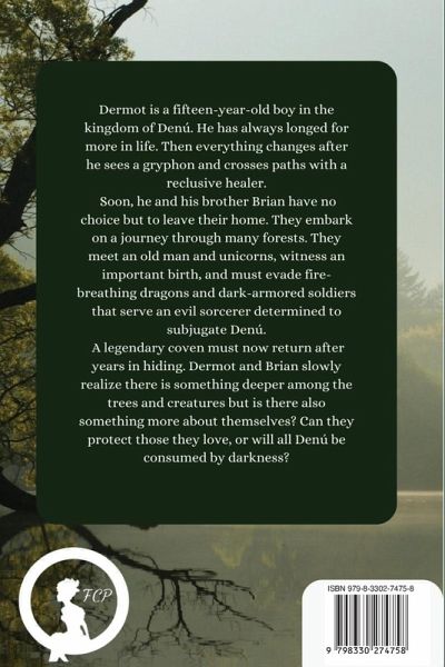 Dermot is a fifteen-year-old boy in the kingdom of Denú. He has always longed for more in life. Then everything changes after he sees a gryphon and crosses paths with a reclusive healer. Soon, he and his brother Brian have no choice but to leave their home. They embark on a journey through many forests. They meet an old man and unicorns, witness an important birth, and must evade fire-breathing dragons and dark-armored soldiers that serve an evil sorcerer determined to subjugate Denú. A legendary coven must now return after years in hiding. Dermot and Brian slowly realize there is something deeper among the trees and creatures, but is there also something more about themselves? Can they protect those they love, or will all Denú be consumed by darkness?