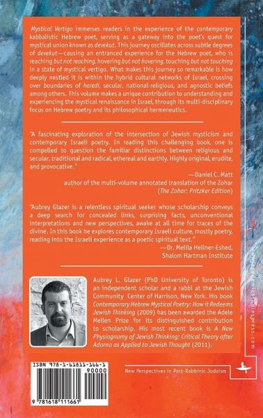 Mystical Vertigo immerses readers in the experience of the contemporary kabbalistic Hebrew poet, serving as a gateway into the poet's quest for mystical union known as devekut. This journey oscillates across subtle degrees of devekut-causing an entranced experience for the Hebrew poet, who is reaching but not reaching, hovering but not hovering, touching but not touching in a state of mystical vertigo. What makes this journey so remarkable is how deeply nestled it is within the hybrid cultural networks of Israel, crossing over boundaries of haredi, secular, national-religious, and agnostic beliefs among others. This volume makes a unique contribution to understanding and experiencing the mystical renaissance in Israel, through its multi-disciplinary focus on Hebrew poetry and its philosophical hermeneutics.