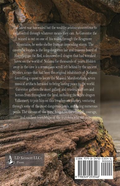 The latest war has ended but the wealthy aristocrats continue to seek control through whatever means they can. As Gaventor the wizard is out on one of his walks through the Kragmore Mountains, he seeks shelter from an impending storm. The cavern he locates is the long-forgotten lair and treasure hoard of Hamshervus the Red, a deceased evil dragon that had wreaked havoc on the world of Nolamu for thousands of years. Hidden away in the cave is a mysterious scroll left behind by the ancient Mystics, a race that had been the original inhabitants of Nolamu. foretelling a quest to locate the Musical…mehr