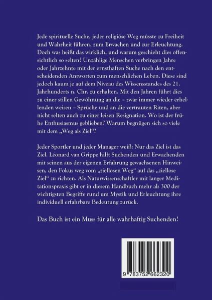 Auf der Suche nach dem Sinn des Lebens begegnen wir Menschen unweigerlich Begriffen, wie Sein, Seele, Geist, Gott oder Gnade. Die seit Jahrhunderten in philosophischen und kirchlichen Kreisen geführten Diskussionen um die Deutung dieser und ähnlicher Begriffe haben jedoch keineswegs zur Klärung beigetragen, sondern eine weiterhin fragende, im spirituellen Suchen sogar höchst verwirrte Menschheit heraufbeschworen. Das vorliegende Handbuch könnte ein Beitrag zu Antworten sein. Es versucht nichts weniger, als den individuellen Zugang zur Mystik aufzuzeigen und zu unterstützen. Dazu stellt Léonard van Grippe klare Anforderungen an die Lesenden bezüglich ihrer Offenheit, Sensibilität und Disziplin. Das Handbuch spiegelt die Entwicklung wider, welche Léonard auf seinem über 75-jährigen Lebensweg durchlaufen hat, eingeschlossen eine fast halb so lange spirituelle Praxis. Vieles, was er schreibt, entspricht nicht den gängigen Meinungen und Vorstellungen, verleiht diesem Buch jedoch erst seinen Reiz und seine Existenzberechtigung.