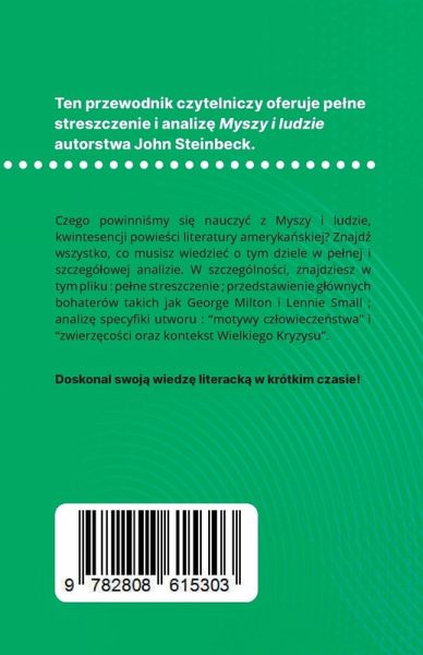 Czego powinni¿my si¿ nauczy¿ z Myszy i ludzie, kwintesencji powie¿ci literatury amerykäskiej? Znajd¿ wszystko, co musisz wiedzie¿ o tym dziele w pe¿nej i szczegó¿owej analizie. W szczególnöci, znajdziesz w tym pliku : - Pe¿ne streszczenie - Przedstawienie g¿ównych bohaterów takich jak George Milton i Lennie Small - Analiz¿ specyfiki utworu: motywy cz¿owiecze¿stwa i zwierz¿cöci oraz kontekst Wielkiego Kryzysu Analiza ¿ród¿owa pozwalaj¿ca szybko zrozumie¿ sens utworu.