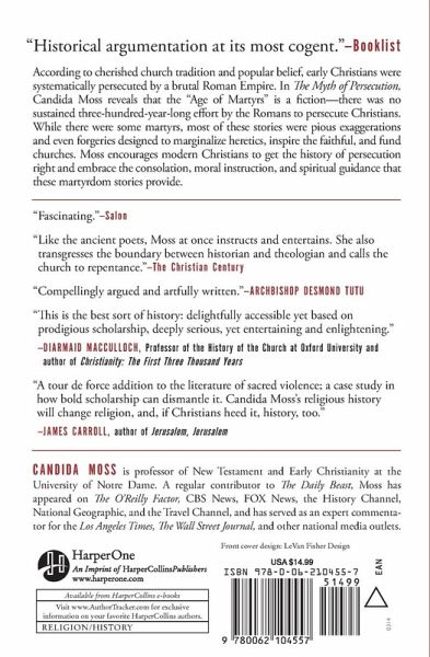 In The Myth of Persecution, Candida Moss, a leading expert on early Christianity, reveals how the early church exaggerated, invented, and forged stories of Christian martyrs and how the dangerous legacy of a martyrdom complex is employed today to silence dissent and galvanize a new generation of culture warriors. According to cherished church tradition and popular belief, before the Emperor Constantine made Christianity legal in the fourth century, early Christians were systematically persecuted by a brutal Roman Empire intent on their destruction. As the story goes, vast numbers of believers were thrown to the lions, tortured, or burned alive because they refused to renounce Christ. These saints, Christianity's inspirational heroes, are still venerated today. Moss, however, exposes that the "Age of Martyrs" is a fiction--there was no sustained 300-year-long effort by the Romans to persecute Christians. Instead, these stories were pious exaggerations; highly stylized rewritings of Jewish, Greek, and Roman noble death traditions; and even forgeries designed to marginalize heretics, inspire the faithful, and fund churches. The traditional story of persecution is still taught in Sunday school classes, celebrated in sermons, and employed by church leaders, politicians, and media pundits who insist that Christians were--and always will be--persecuted by a hostile, secular world. Moss urges modern Christians to abandon the conspiratorial assumption that the world is out to get Christians and, rather, embrace the consolation, moral instruction, and spiritual guidance that these martyrdom stories provide.