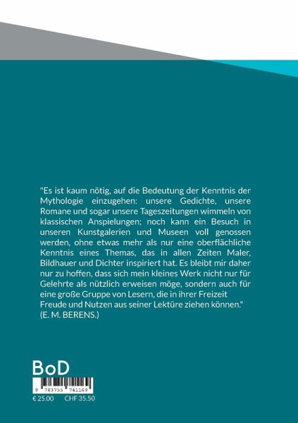 "Es ist kaum nötig, auf die Bedeutung der Kenntnis der Mythologie einzugehen: unsere Gedichte, unsere Romane und sogar unsere Tageszeitungen wimmeln von klassischen Anspielungen; noch kann ein Besuch in unseren Kunstgalerien und Museen voll genossen werden, ohne etwas mehr als nur eine oberflächliche Kenntnis eines Themas, das in allen Zeiten Maler, Bildhauer und Dichter inspiriert hat. Es bleibt mir daher nur zu hoffen, dass sich mein kleines Werk nicht nur für Gelehrte als nützlich erweisen möge, sondern auch für eine große Gruppe von Lesern, die in ihrer Freizeit Freude und Nutzen aus seiner Lektüre ziehen können."(E. M. BERENS.)