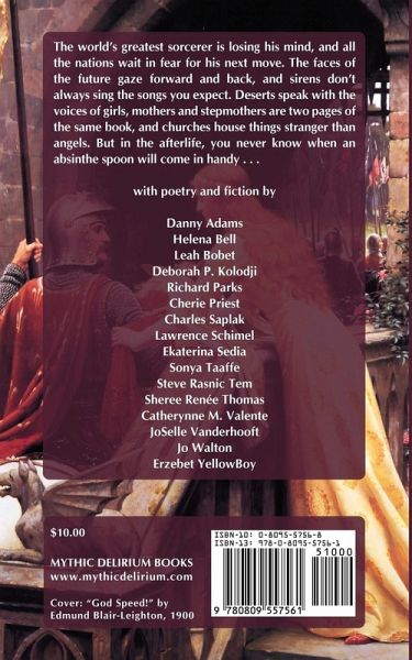 The world's greatest sorcerer is losing his mind, and all the nations wait in fear for his next move. The faces of the future gaze forward and back, and sirens don't always sing the songs you expect. Deserts speak with the voices of girls, mothers and stepmothers are two pages of the same book, and churches house things stranger than angels. But in the afterlife, you never know when an absinthe spoon will come in handy . . . . The second volume in the critically acclaimed fantasy anthology series from Mythic Delirium Books, edited by Rhysling Award-winning poet Mike Allen, with new writings by Leah Bobet, Richard Parks, Cherie Priest, Catherynne M. Valente, Lawrence Schimel, Sonya Taaffe, Steve Rasnic Tem, Jo Walton and more.