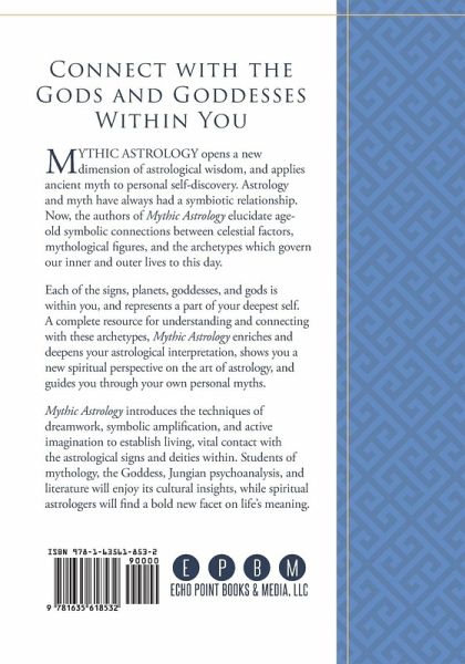 Connect with the Gods and Goddesses Within You Mythic Astrology opens a new dimension of astrological wisdom, and applies ancient myth to personal self-discovery. Astrology and myth have always had a symbiotic relationship. Now, the authors of Mythic Astrology elucidate age-old symbolic connections between celestial factors, mythological figures, and the archetypes which govern our inner and outer lives to this day. Each of the signs, planets, goddesses, and gods is within you, and represents a part of your deepest self. A complete resource for understanding and connecting with these archetypes, Mythic Astrology enriches and deepens your astrological interpretation, shows you a new spiritual perspective on the art of astrology, and guides you through your own personal myths. Mythic Astrology introduces the techniques of dreamwork, symbolic amplification, and active imagination to establish living, vital contact with the astrological signs and deities within. Students of mythology, the Goddess, Jungian psychoanalysis, and literature will enjoy its cultural insights, while spiritual astrologers will find a bold new facet on life’s meaning. Be sure to complete your journey by reading Guttman and Johnsnon's companion work, Mythic Astrology Applied.