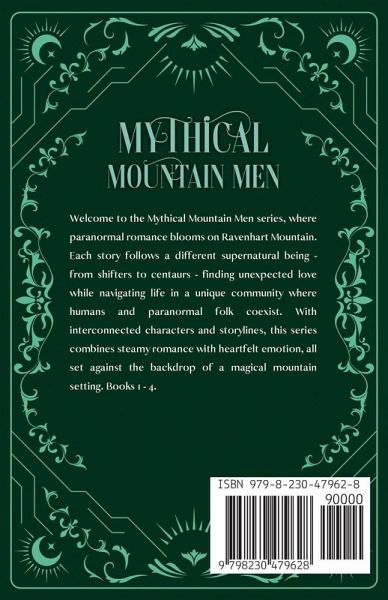 Welcome to the Mythical Mountain Men series, where paranormal romance blooms on Ravenhart Mountain. Each story follows a different supernatural being - from shifters to centaurs - finding unexpected love while navigating life in a unique community where humans and paranormal folk coexist. With interconnected characters and storylines, this series combines steamy romance with heartfelt emotion, all set against the backdrop of a magical mountain setting. Mythical Mountain Men: Books 1-4 contains several first person POV, one-hour instalove reads, perfect for your lunch break or work commute. Or simply for just taking a breather - you deserve it! Click 'BUY NOW' to read Mythical Mountain Men: Books 1-4 today!