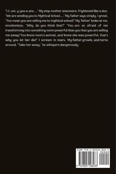 "I-I, um, y-you a-are...." My step-mother stammers, frightened like a doe. "We are sending you to Mythical School...." My father says simply. I growl, "You mean you are selling me to mythical school!" My 'father' looks at me, emotionless, "Why do you think that?" "You are so afraid of me transforming into something more powerful than you that you are selling me away! You knew mom's animal, and knew she was powerful, that's why you let her die!" I scream in tears. My father growls, and turns around. "Take her away," he whispers dangerously.