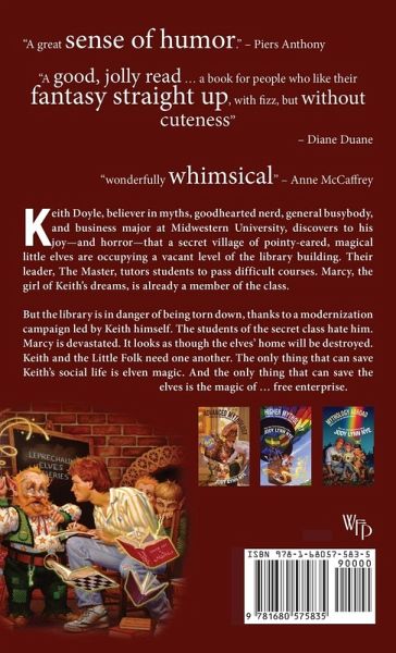 Keith Doyle, believer in myths, goodhearted nerd, general busybody, and business major at Midwestern University, discovers to his joy-and horror-that a secret village of pointy-eared, magical little elves are occupying a vacant level of the library building. Their leader, The Master, tutors students to pass difficult courses. Marcy, the girl of Keith's dreams, is already a member of the class. But the library is in danger of being torn down, thanks to a modernization campaign led by Keith himself. The students of the secret class hate him. Marcy is devastated. It looks as though the elves' home will be destroyed. Keith and the Little Folk need one another. The only thing that can save Keith's social life is elven magic. And the only thing that can save the elves is the magic of ... free enterprise.