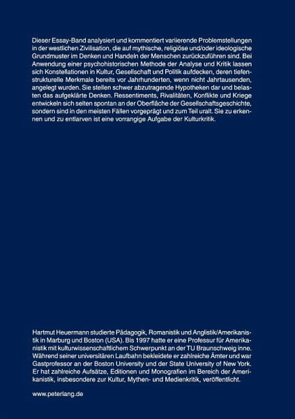 Dieser Essay-Band analysiert und kommentiert variierende Problemstellungen in der westlichen Zivilisation, die auf mythische, religiöse und/oder ideologische Grundmuster im Denken und Handeln der Menschen zurückzuführen sind. Bei Anwendung einer psychohistorischen Methode der Analyse und Kritik lassen sich Konstellationen in Kultur, Gesellschaft und Politik aufdecken, deren tiefenstrukturelle Merkmale bereits vor Jahrhunderten, wenn nicht Jahrtausenden, angelegt wurden. Sie stellen schwer abzutragende Hypotheken dar und belasten das aufgeklärte Denken. Ressentiments, Rivalitäten, Konflikte und Kriege entwickeln sich selten spontan an der Oberfläche der Gesellschaftsgeschichte, sondern sind in den meisten Fällen vorgeprägt und zum Teil uralt. Sie zu erkennen und zu entlarven ist eine vorrangige Aufgabe der Kulturkritik.