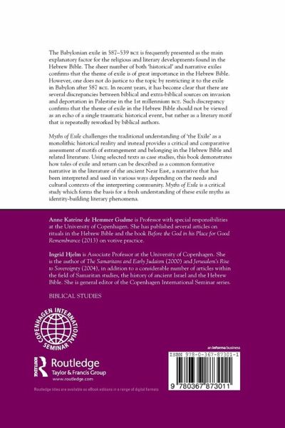 The Babylonian exile in 587-539 BCE is frequently presented as the main explanatory factor for the religious and literary developments found in the Hebrew Bible. The sheer number of both 'historical' and narrative exiles confirms that the theme of exile is of great importance in the Hebrew Bible. However, one does not do justice to the topic by restricting it to the exile in Babylon after 587 BCE. In recent years, it has become clear that there are several discrepancies between biblical and extra-biblical sources on invasion and deportation in Palestine in the 1st millennium BCE. Such discrepancy confirms that the theme of exile in the Hebrew Bible should not be viewed as an echo of a single traumatic historical event, but rather as a literary motif that is repeatedly reworked by biblical authors. Myths of Exile challenges the traditional understanding of 'the Exile' as a monolithic historical reality and instead provides a critical and comparative assessment of motifs of estrangement and belonging in the Hebrew Bible and related literature. Using selected texts as case studies, this book demonstrates how tales of exile and return can be described as a common formative narrative in the literature of the ancient Near East, a narrative that has been interpreted and used in various ways depending on the needs and cultural contexts of the interpreting community. Myths of Exile is a critical study which forms the basis for a fresh understanding of these exile myths as identity-building literary phenomena.