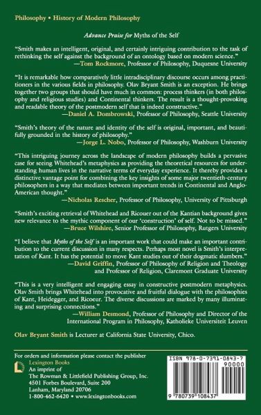 Myths of the Self is a departure from the standard fare of postmodern thought. In a unique and brilliant turn, Smith argues that the best way of dealing with the topic of the self is a synthesis of a narrative theory of identity, using Ricoeur as a source, along with the constructive "postmodern" metaphysics of Alfred North Whitehead. The resulting synthesis is a new and potentially invigorating spin on the genesis of postmodern thought.