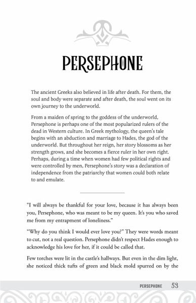 Myths of the Underworld is a vibrant collection of ten retellings of forbidden love, acts of vengeance, and naive attractions. Modernized for today's reader, these diverse stories span time and space. But while the cultures and traditions are varied, the themes woven throughout these tales reveal how the struggle to understand and accept death and all that comes with it is one that is quintessentially human. The ten different stories include: * Hades and Persephone, the classic myth from Ancient Greece * Kali, the Indian goddess (and wife of Shiva), known for her fierceness on the battlefield * Anubis, the ancient Egyptian god of the underworld * Mictlantecuhtli and Mictecacíhuatl, the lovers who ruled the Aztec underworld * The Shinigami, Japanese spirits of the underworld * Maman Brigitte, the Haitian intermediary of death * Gamab, the Namibian god of fate who gifted rain to mankind * Hel, the Norse overseer of the underworld * Sedna, the Inuit goddess of the sea and the underworld * The Sand Hills, the home of the dead for the Blackfeet Nation The tales in Myths of the Underworld are sure to captivate and enchant readers. Perfect for fans of mythology, romance, and fairy tales.