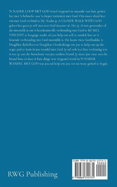 'N NADER LOOP MET GOD word vrygestel na maande van baie gesien het met 'n behoefte aan 'n dieper intimiteit met God. Ons moet almal leer om met God verbind te bly. Nadat jy A CLOSER WALK WITH GOD gelees het gaan jy self sien wat God daaroor sê. Het jy al ooit gewonder of dit moontlik is om 'n betekenisvolle verhouding met God te hê? BILL VINCENT se kragtige studie sal jou help om self te ontdek hoe so 'n lonende verhouding met God moontlik is. Die laaste twee hoofstukke is Daaglikse Bybellees en Daaglikse Oordenkings om jou te help om op die regte pad te kom in jou wandel met God. Jy sal ook leer hoe verlossing iets is wat jy aan die binnekant van jou aanhou brand. Jy moet jou vuur aan die brand hou en daar is baie dinge wat vrygestel word in 'N NADER WANDEL MET GOD wat jou sal help om jou reis na ware geloof te begin.