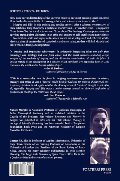 What is the ethical import of contemporary scientific cosmology? How does our understanding of the universe relate to our most pressing social concerns? How do the disparate fields of theology, ethics, and the sciences relate to each other? Murphy and Ellis offer a coherent construction of these relations and show how a particular moral vision-a "kenotic" ethic-is supported "from below" by the social sciences and "from above" by theology. The theological import of contemporary cosmology, they argue, points ultimately to an ethic that centers on self-sacrifice and nonviolence. In ambition, rigor, and scale, in its search for an integrated and coherent worldview at a time of unprecedented complexity and uncertainty, readers will find this volume daring and important.