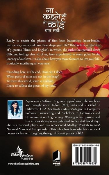 Ready to revisit the phases of first love, butterflies, heart-breaks, hard-work, career and how these shape your life? This book is a collection of 51 poems (Hindi and English), in which, the author has penned down different feelings that all of us, have experienced at some point in the journey of our lives. It talks about how you move forward to live your life, ironically, sacrificing all you have! "Standing here, at the end, How can I sleep, When parts of mine are not in the heap? To leave this world, leave as a whole, I have to collect the pieces of my soul!"