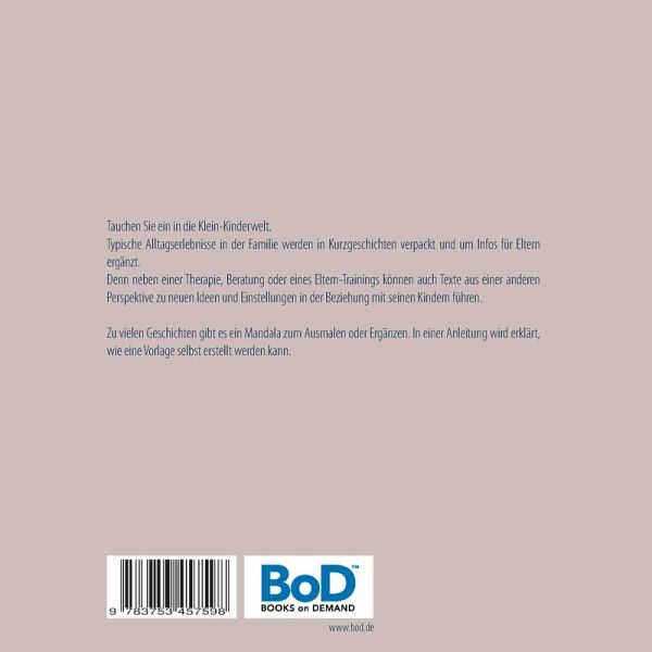 Tauchen Sie ein in die Klein-Kinderwelt. Typische Alltagserlebnisse in der Familie werden in Kurzgeschichten verpackt und um Infos für Eltern ergänzt. Denn neben einer Therapie, Beratung oder eines Eltern-Trainings können auch Texte aus einer anderen Perspektive zu neuen Ideen und Einstellungen in der Beziehung mit seinen Kindern führen. Zu vielen Geschichten gibt es ein Mandala zum Ausmalen oder Ergänzen. In einer Anleitung wird erklärt, wie eine Vorlage selbst erstellt werden kann.