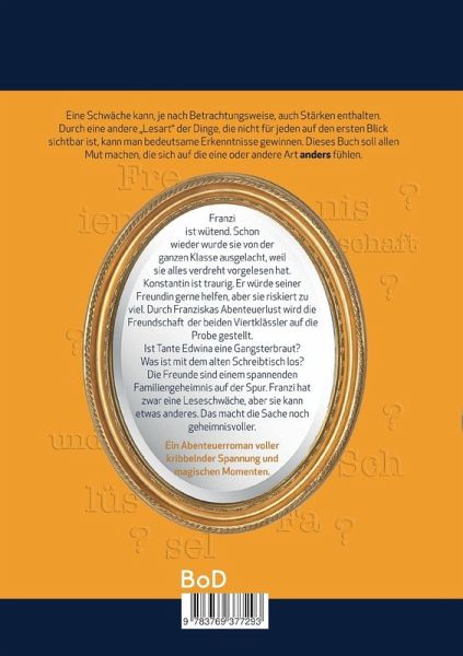 Abenteuerroman, Freundschaft, Mut, Neugier und Phantasie zeichnen die Schulkinder Franziska und Konstantin bei ihrer spannenden Spurensuche aus. Franziskas Leseschwäche mit magischer Nebenwirkung hilft ein Familiengeheimnis zu lösen.