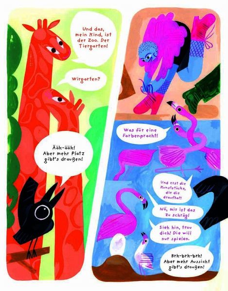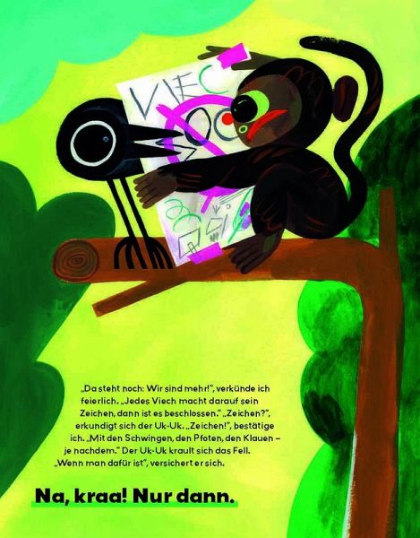 Im Zoo herrscht morgens mal wieder Durchhängeralarm - alle Tiere sind versorgt, keiner hat Stress, aber so richtig wild ist hier niemand mehr. Außer der Wilden Kraa! Mit großen Worten und einer Petition zieht sie von Gehege zu Gehege: »Wer will hier raus?« Doch die Begeisterung hält sich in Grenzen - Freiheit? Was soll das sein? Ein warmes Nest, genug Futter und ein Publikum, das einen bestaunt - ist das nicht schon Freiheit genug? Während die Tiere diskutieren, merkt die Kraa: Freiheit hat viele Gesichter. Doch erst als ein kleiner Fisch aus dem Aquarium vorsichtig fragt, ob Freiheit bedeutet, weiter als bis zum Glas zu schwimmen, kommt Bewegung in die Sache.