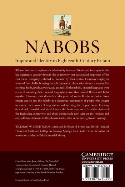 In this book, Tillman Nechtman explores the relationship between Britain and its empire in the late eighteenth century through the controversy that surrounded employees of the East India Company. Labelled as 'nabobs' by their critics, Company employees returned from India, bringing the subcontinent's culture with them - souvenirs like clothing, foods, jewels, artwork, and animals. To the nabobs, imperial keepsakes were a way of narrating their imperial biographies, lives that braided Britain and India together. However, their domestic critics preferred to see Britain as distinct from empire and so saw the nabobs as a dangerous community of people who sought to reverse the currents of imperialism and to bring the empire home. Drawing on cultural, material, and visual history, this book captures a far wider picture of the fascinating controversy and sheds considerable new light on the tensions and contradictions inherent in British national identity in the late eighteenth century.