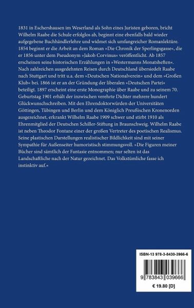Wilhelm Raabe: Nach dem großen Kriege. Eine Geschichte in zwölf Briefen Entstanden zwischen August 1860 und März 1861. Erstdruck bei Ernst Schotte, Berlin, 1861. Vollständige Neuausgabe mit einer Biographie des Autors. Herausgegeben von Karl-Maria Guth. Berlin 2015. Umschlaggestaltung von Thomas Schultz-Overhage unter Verwendung des Bildes: Alexander Zaureweid, Die Völkerschlacht bei Leipzig 1813, 1844. Gesetzt aus Minion Pro, 11 pt. Über den Autor: 1831 in Eschershausen im Weserland als Sohn eines Juristen geboren, bricht Wilhelm Raabe die Schule erfolglos ab, beginnt eine ebenfalls bald wieder aufgegebene Buchhändlerlehre und widmet sich umfangreicher Romanlektüre. 1854 beginnt er die Arbeit an dem Roman »Die Chronik der Sperlingsgasse«, die er 1856 unter dem Pseudonym »Jakob Corvinus« veröffentlicht. Ab 1857 erscheinen seine historischen Erzählungen in »Westermanns Monatsheften«. Nach zahlreichen ausgedehnten Reisen durch Deutschland übersiedelt Raabe nach Stuttgart und tritt u.a. dem »Deutschen Nationalverein« und dem »Großen Klub« bei. 1866 ist er an der Gründung der liberalen »Deutschen Partei« beteiligt. 1897 erscheint eine erste Monographie über Raabe und zu seinem 70. Geburtstag 1901 erhält der inzwischen verehrte Dichter mehrere hundert Glückwunschschreiben. Mit den Ehrendoktorwürden der Universitäten Göttingen, Tübingen und Berlin und dem Königlich Preußischen Kronenorden ausgezeichnet, erkrankt Wilhelm Raabe 1909 schwer und stirbt 1910 als Ehrenmitglied der Deutschen Schiller-Stiftung in Braunschweig. Wilhelm Raabe ist neben Theodor Fontane einer der großen Vertreter des poetischen Realismus. Seine plastischen Darstellungen realistischer Bildlichkeit sind mit seiner Sympathie für Außenseiter humoristisch stimmungsvoll. »Die Figuren meiner Bücher sind sämtlich der Fantasie entnommen; nur selten ist das Landschaftliche nach der Natur gezeichnet. Das Volkstümliche fasse ich instinktiv auf.«