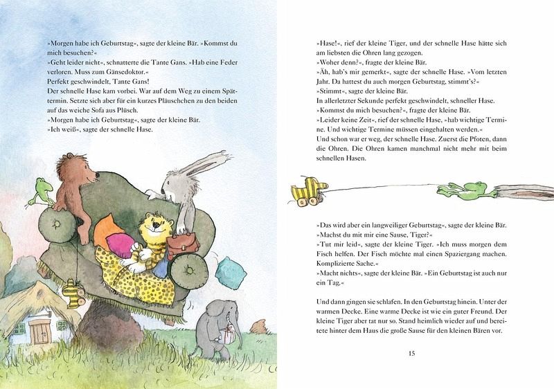 "Nach einer Figurenwelt von Janosch. Freunde, ist das Leben schön!" von Florian Fickel entführt in die liebenswerte Welt des kleinen Tigers und des kleinen Bären, die durch ihre Abenteuer die Bedeutung von Freundschaft, Freiheit und dem kleinen Glück im Leben entdecken. In diesem Vorlesebuch für Kinder ab 4 Jahren werden Themen wie Eifersucht, Langeweile, Geburtstag feiern und Schatzsuchen auf humorvolle und fantasievolle Weise behandelt, wobei die Geschichten stets die Wichtigkeit von gemeinschaftlichen Werten wie Freundschaft, Gemeinschaftsgefühl und Offenheit unterstreichen. Mit liebevollen, originalgetreuen Illustrationen nach Janoschs Figurenwelt weitergeführt, bietet dieses Buch nicht nur Spaß für die ganze Familie, sondern auch wertvolle Lektionen für das Leben. Es ist eine Hommage an die unvergesslichen Charaktere von Janosch, die sowohl Kinder als auch Erwachsene in ihren Bann ziehen. Dieses Buch ist eine perfekte Gelegenheit, um Kindern die Magie des Vorlesens und die Freude am Zuhören nahezubringen, während gleichzeitig die zeitlosen Werte von Janoschs Figurenwelt weitergegeben werden. * Kinderbuchklassiker neu erleben : Tauche mit deinen Kindern in die weltbekannten Abenteuer des kleinen Tigers und des kleinen Bären ein. * Wertvolle Lebenslektionen : Die Geschichten vermitteln auf unterhaltsame Weise wichtige Werte wie Freundschaft, Empathie und das Finden von Freude in den kleinen Dingen des Lebens. * Humor und Fantasie: Lustige und einfallsreiche Erzählungen sorgen für Vergnügen bei Vorlesenden und Zuhörenden. * Liebevolle Illustrationen : Die originalgetreuen Zeichnungen wecken Nostalgie und bringen die Figurenwelt von Janosch zum Leben. * Für Zuhörer*innen ab 4 Jahren: Ideal für gemeinsame Vorlesestunden und als Einstieg in die Welt der Bücher. * Zeitlose Themen : Die Geschichten sprechen universelle Themen an, die Generationen verbinden. * Hohe Popularität und Medienpräsenz : Die Figuren von Janosch genießen ungebrochene Beliebtheit und sind ein sicherer Hit für das heimische Bücherregal.