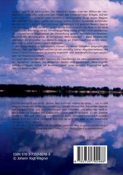 Deutschland im 18. Jahrhundert. Die Menschen leiden unter der Willkür der Herzöge und Landgrafen und unter den Folgen des Siebenjährigen Krieges. Auf der Suche nach einem besseren Leben beschließt der hessische Bauer Adam Wagner, dem Manifest der Zarin Katharina Folge zu leisten, in dem Ausländer aufgerufen werden, sich in Russland niederzulassen. Gemeinsam mit anderen Bauern lässt er sich mit Frau und vier Kindern auf das große Abenteuer ein: die Reise in das ferne Wolgagebiet. Allerdings ist die 14-monatige Reise weder einfach, noch problemlos: Die unzureichende Organisation der Umsiedlung seitens der russischen Beamten, die Kälte, das Winterquartier in einfachsten Wohnbaracken - diese schwere Zeit überleben die Umsiedler nur dadurch, dass sie an ihrem Traum von einem besseren Leben in einer nahen Zukunft festhalten.In der Wolga-Region angekommen, müssen sie weiter kämpfen: Entgegen den vertraglichen Festlegungen werden sie mit unmäßig hohen Abgaben belastet, die Preise für ihre Ernte werden zu niedrig angesetzt und ihre Verpflichtungen gegenüber der Staatskasse erhöht. Ihr Leben wird von Nomaden bedroht, die Überfälle auf die nahe gelegenen Dörfer der Deutschen verüben. Die deutschen Siedler sind gezwungen, diese Angriffe zurückzuschlagen. Selbst der Bauernaufstand unter Jemeljan Pugatschow geht nicht an ihnen vorbei.Parallel dazu wird von einem fernen Nachkommen Adams berichtet - von Arnold Wagner. Dieser lebt in der Sowjetunion zur Zeit der Perestroika. Aus seiner eigenen Familiengeschichte und aus Erzählungen von Freunden und Bekannten weiß er, wie schwer das Schicksal der Russlanddeutschen war. Er ist dabei, als der "Eiserne Vorhang" fällt und sein Volk vor der Frage steht, entweder innerhalb Russlands wieder eine autonome deutsche Republik zu errichten oder in die historische Heimat zurück zu kehren. Als Arnold und seine Freunde versuchen, ersteren Weg zu gehen, stoßen sie auf bürokratische Hindernisse und beschließen, nach Deutschland auszuwandern