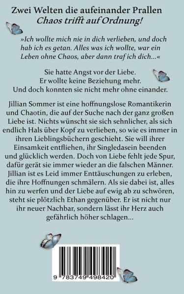 Zwei Welten die aufeinander Prallen...Chaos trifft auf Ordnung!»Ich wollte mich nie in dich verlieben, und doch hab ich es getan. Alles was ich wollte, war ein Leben ohne Chaos, aber dann traf ich dich...«Sie hatte Angst vor der Liebe.Er wollte keine Beziehung mehr.Und doch konnten sie nicht mehr ohne einander.Jillian Sommer ist eine hoffnungslose Romantikerin und Chaotin, die auf der Suche nach der ganz großen Liebe ist. Nichts wünscht sie sich sehnlicher, als sich endlich Hals über Kopf zu verlieben, so wie es immer in ihren Lieblingsbüchern geschieht. Sie will ihrer Einsamkeit entfliehen, ihr Singledasein beenden und glücklich werden. Doch von Liebe fehlt jede Spur, dafür gerät sie immer wieder an die falschen Männer. Jillian ist es Leid immer Enttäuschungen zu erleben, die ihre Hoffnungen schmälern. Als sie dabei ist, alles hin zu werfen und der Liebe auf ewig ab zu schwören, steht sie plötzlich Ethan gegenüber. Er ist nicht nur ihr neuer Nachbar, sondern lässt ihr Herz auch gefährlich höher schlagen...Band 1 der Reihe - Jillian & EthanAlle Bände können unabhängig voneinander gelesen werden